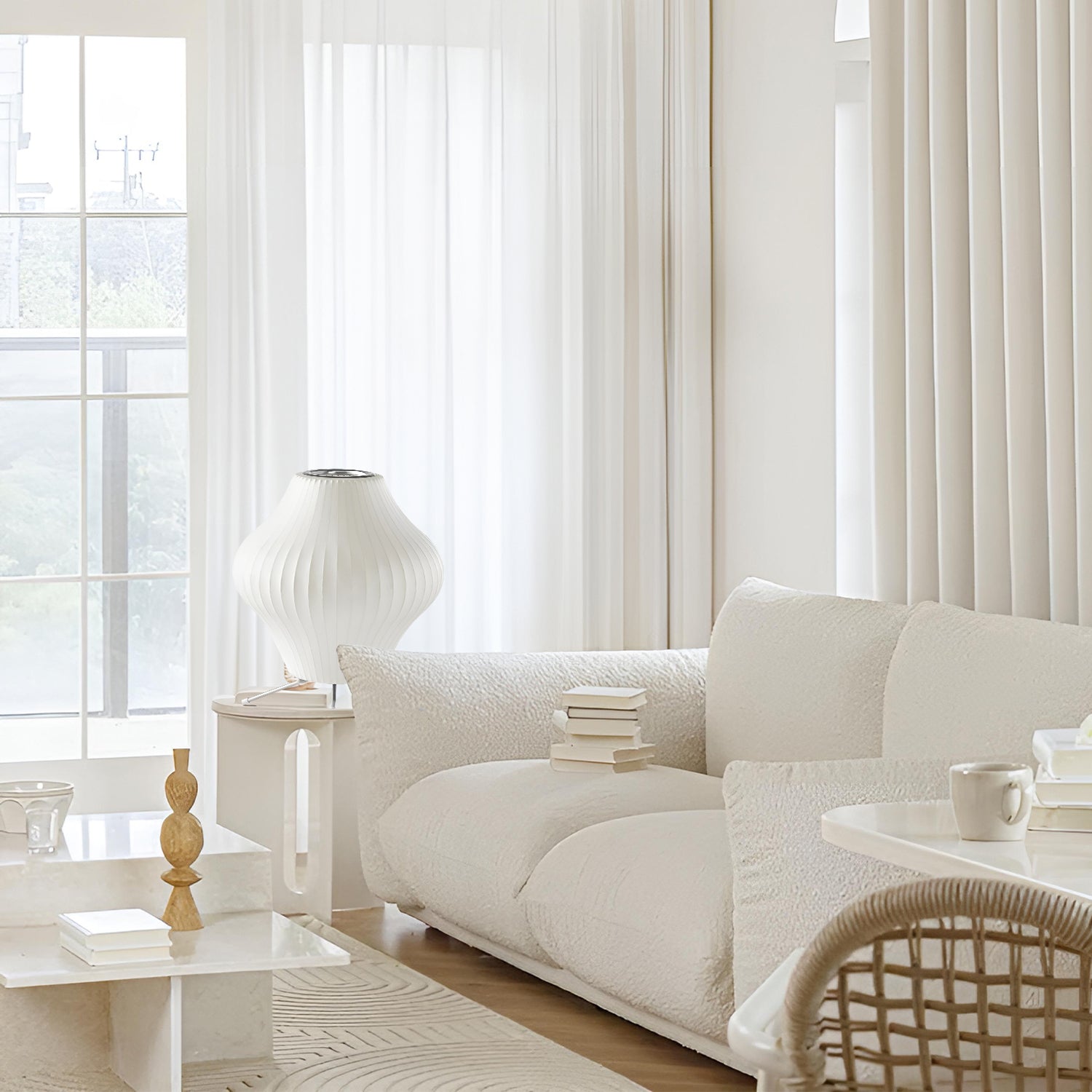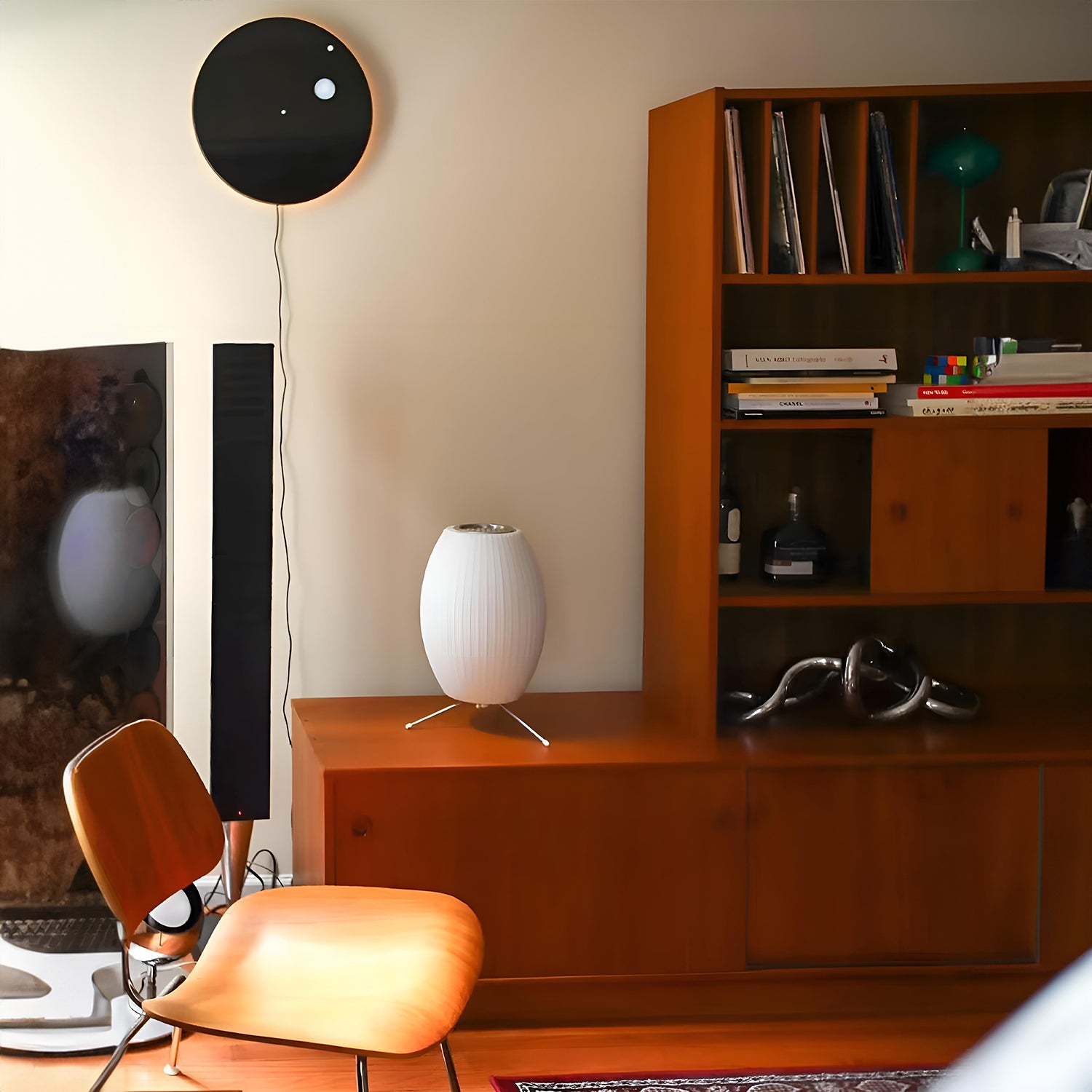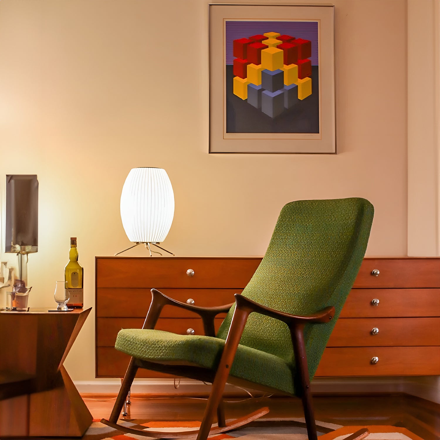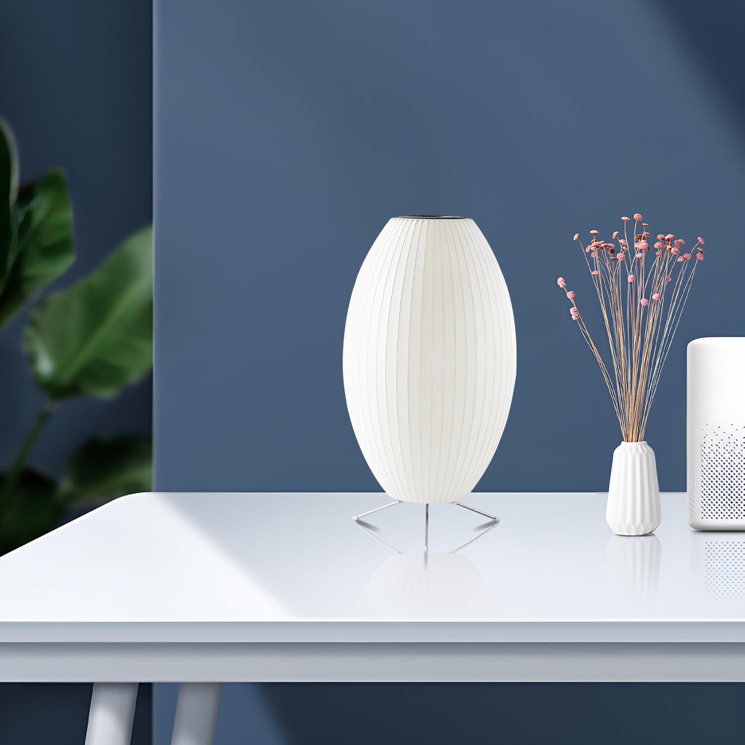Unveil the understated elegance of the "Nelson Tripod Table Lamp," a luminary that reflects the wabi-sabi philosophy of embracing the perfectly imperfect. This lamp features a delicate silk-like orb that gently diffuses light, creating a soft, ambient glow that enhances any room with its presence. Supported by a minimalist tripod base, the design of this lamp balances simplicity and sophistication, making it an ideal accent for a variety of decors. Perfect for adding a touch of zen-like tranquility to your bedroom, living room, or study, the Silken Orb Tripod Lamp stands as a testament to timeless design and the beauty found in simplicity.